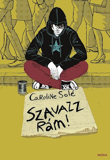 Ez a kötet már a borítójával is megfogja a tekintetet, hiszen egy mustársárga háttéren emberi alakok sziluettje tűnik fel, míg előttük pedig egy kamasz fiú rajza látható, mely elsőre talán nem is annyira egyedi. De jobban megnézve, már a részletekre is fókuszálhatunk, mint a mellette lévő fémdoboz, melyet a kéregetés miatt helyezett ki és egy fél kartonlap, melyre a kötet címe lett felfestve: Szavazz rám! A kép összhatásilag sokkoló, még akkor is, ha valaki érzéketlenebb az efféle „művészetre”, hiszen nyílt panelen hirdeti, ez a történet meg fogja rázni az olvasója lelkét.
